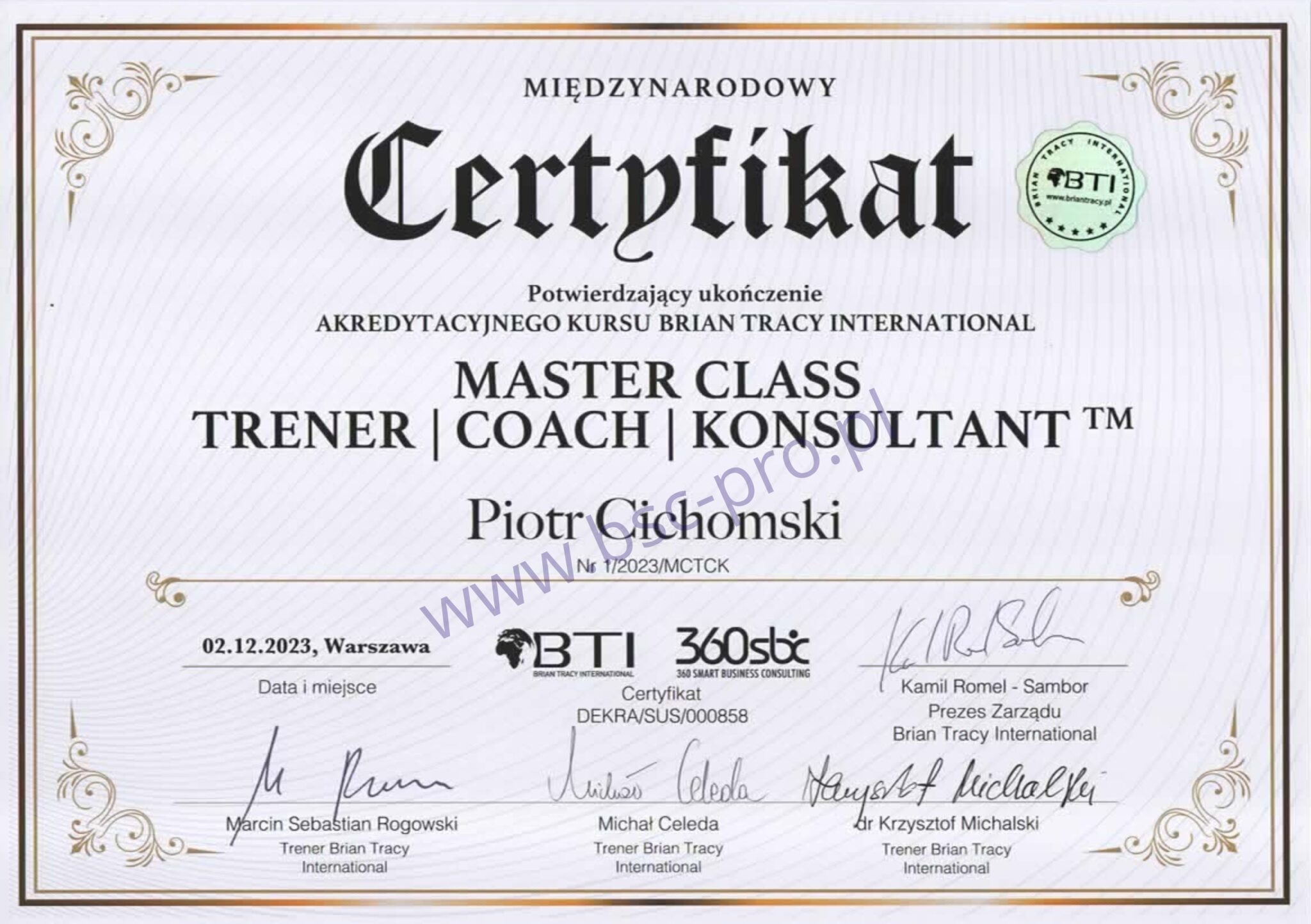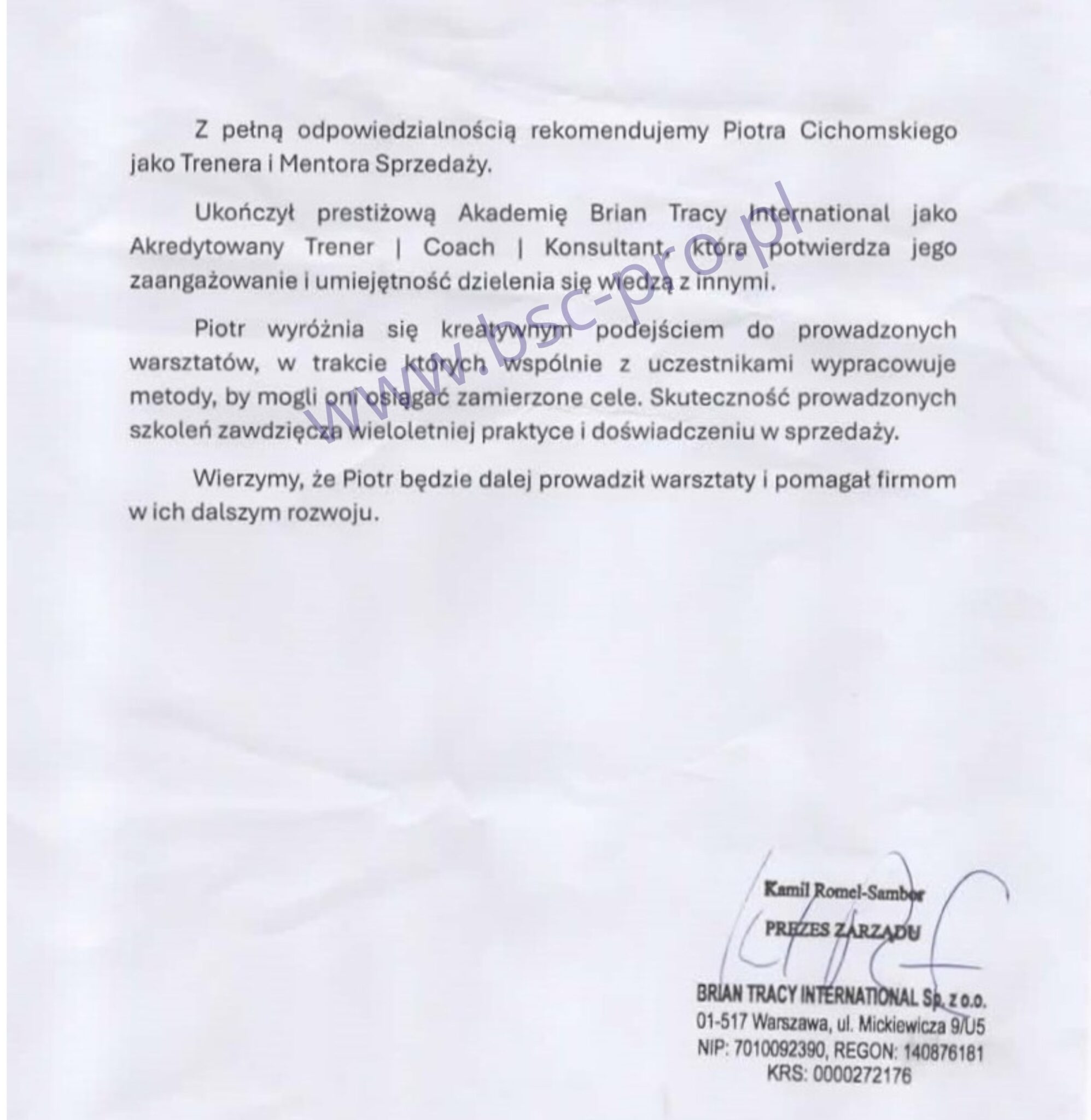 Jako trener koncentruję się na dostarczaniu praktycznych narzędzi, które są łatwe do wdrożenia i przynoszą szybkie efekty. Akredytacja Brian Tracy International daje mi dostęp do światowej klasy metod, które skutecznie wspierają rozwój indywidualnych umiejętności sprzedażowych i budowę efektywnych zespołów.